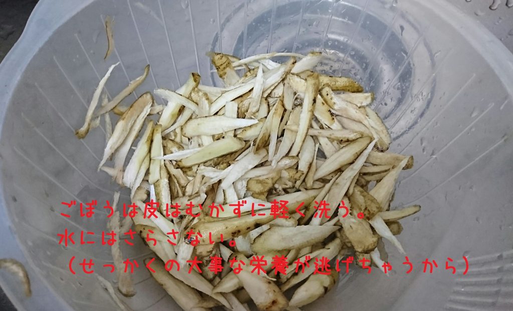 ごぼうは汚れを落とす程度に洗う(大事な栄養素が皮にもたっぷりあるので)