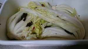 塩でつけて重しをのせて冷蔵庫で眠ってます(*´∇`*)
