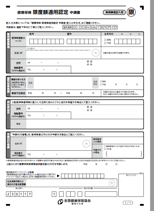 1).申請書に「被保険者」の記号番号と名前を記入。