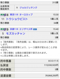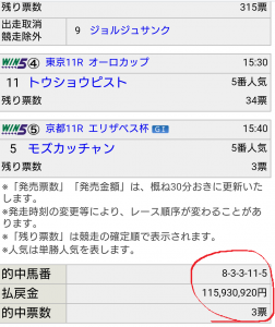 JRA(競馬) 今日のWIN5(決まった5つのレースの1着を予想する)