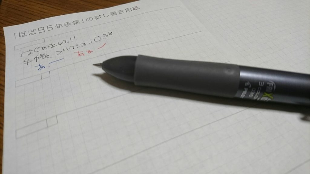 フリクションの0.38mmの3色ペンで書く、と決めていた。