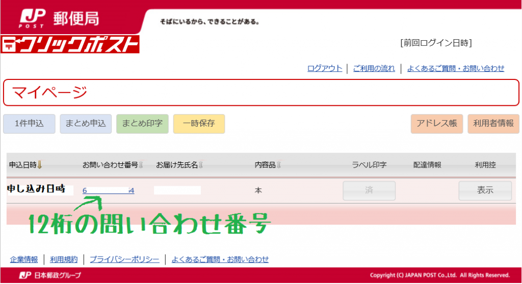 印刷された用紙にはお問い合わせ番号は記載されてないんだけど