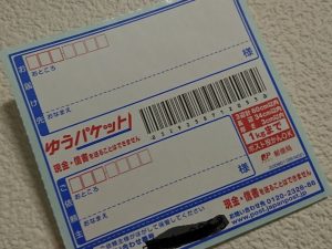 郵便局でゆうパケット専用の宛名シールをもらう。