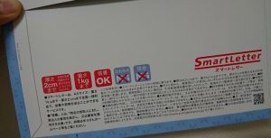 スマートレターを郵便局(コンビニでも切手とかを扱ってる所なら取り扱っている所もあり)で180円で購入。