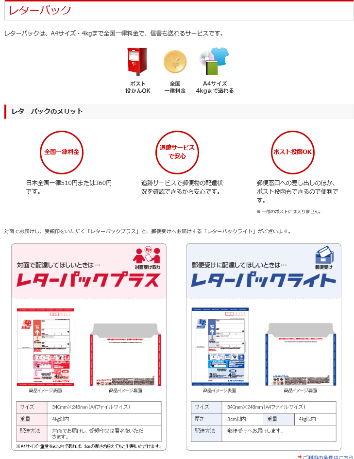 サービス名 | クリックポスト | スマートレター | ゆうメール | レターパック | ゆうパケット | |