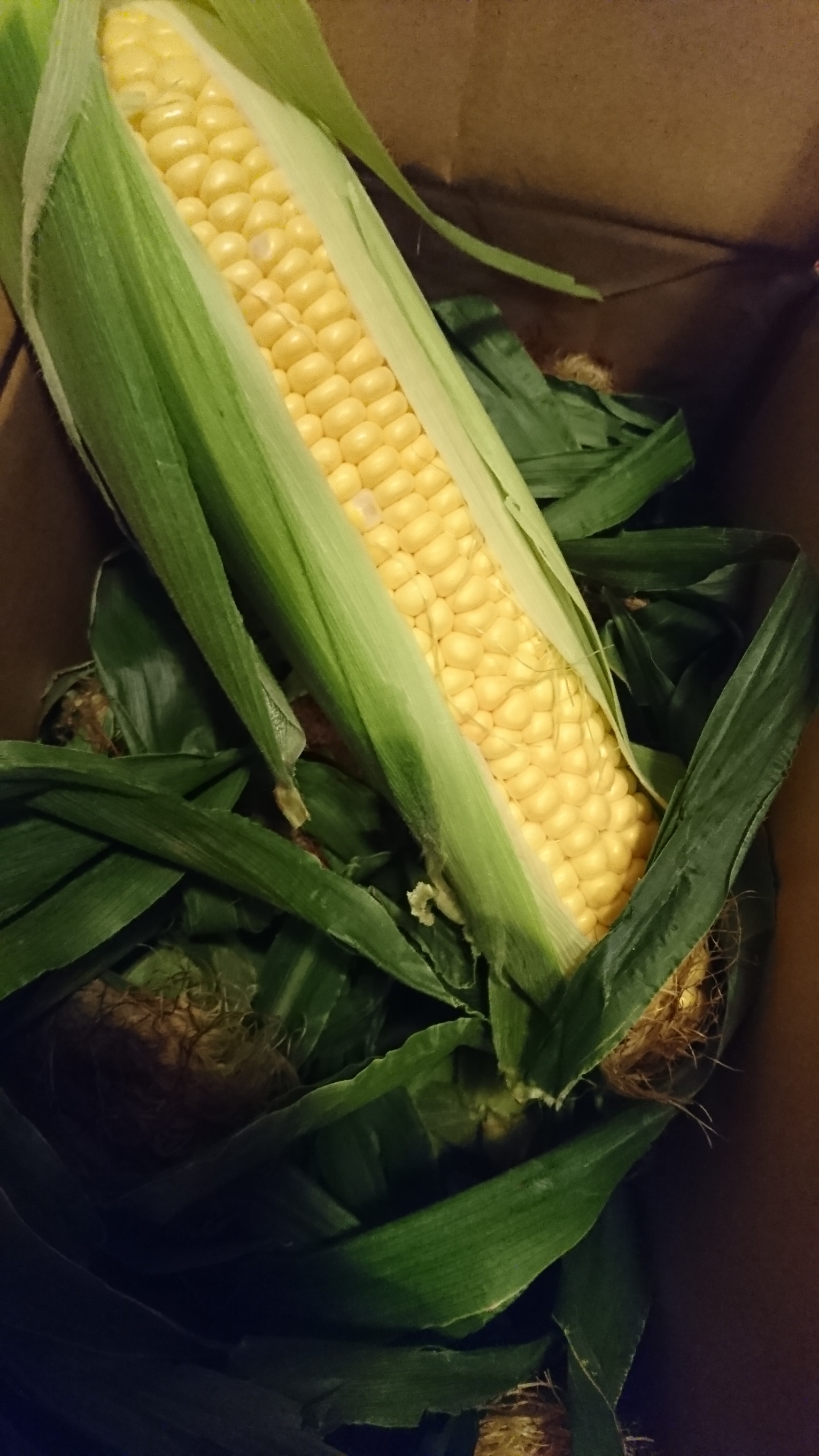 「私のとうもろこしは先まで実が大きくてビッシリなのよ~(*´з`)」