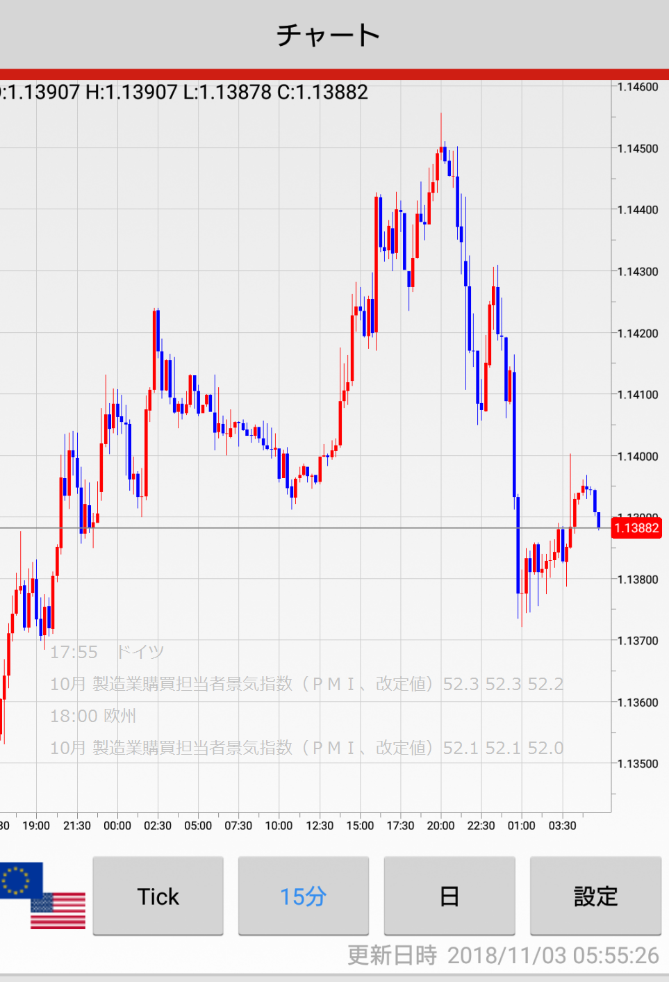 (月~金は15分チャート、一週間の振り返りの時は60分チャートです)