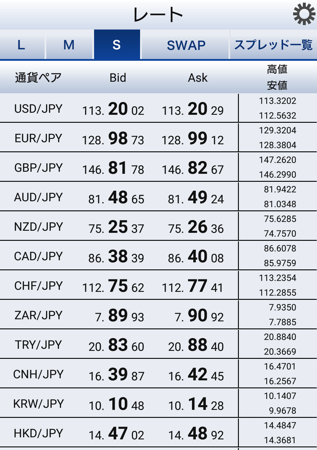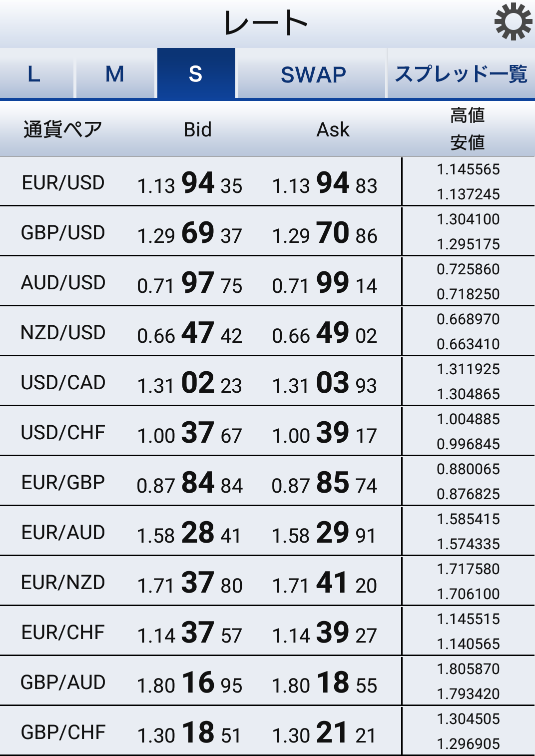 SBIFXトレード全通貨一覧