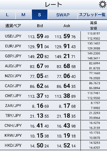 SBIFXトレード全通貨一覧