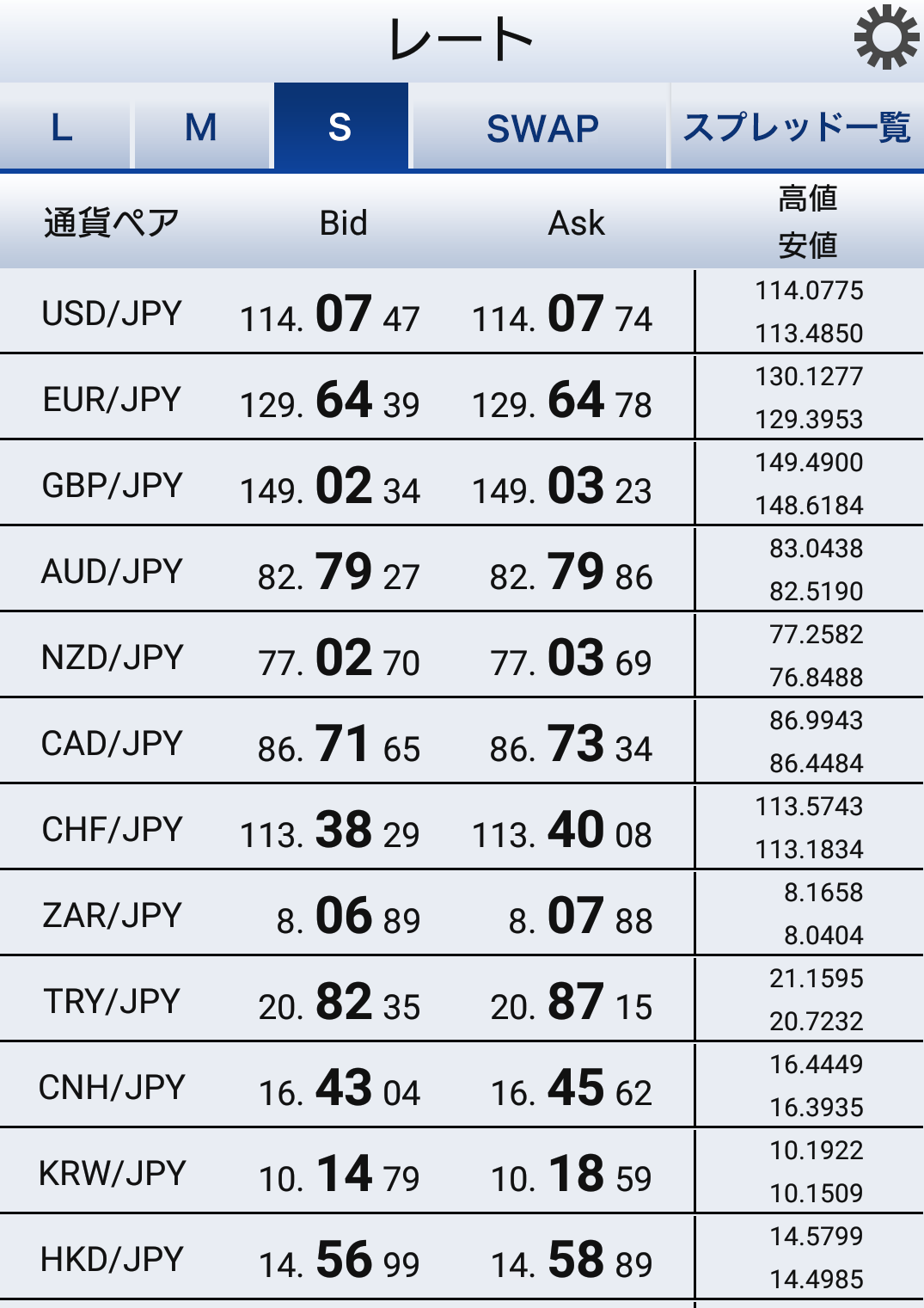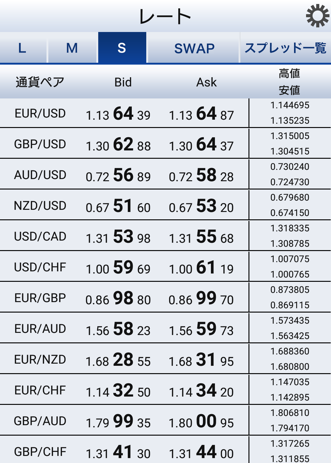 SBIFXトレード全通貨一覧