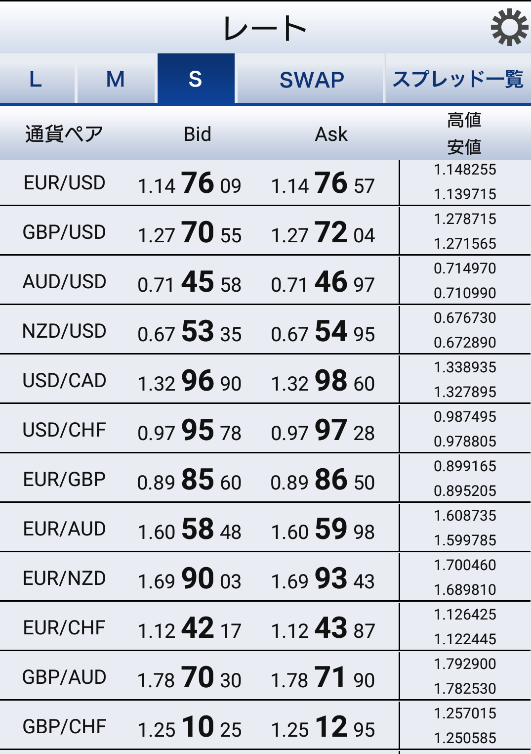 通貨ごとに( 米ドル × ユロドル = ユロ円 なので)並べています。