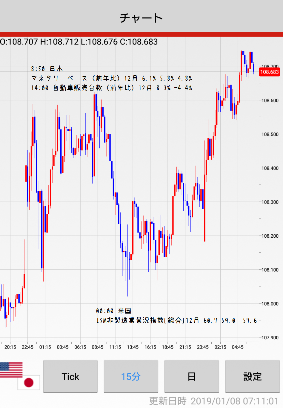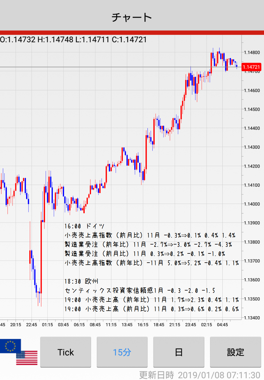 (月~金は15分チャート、一週間の振り返りの時は60分チャートです)