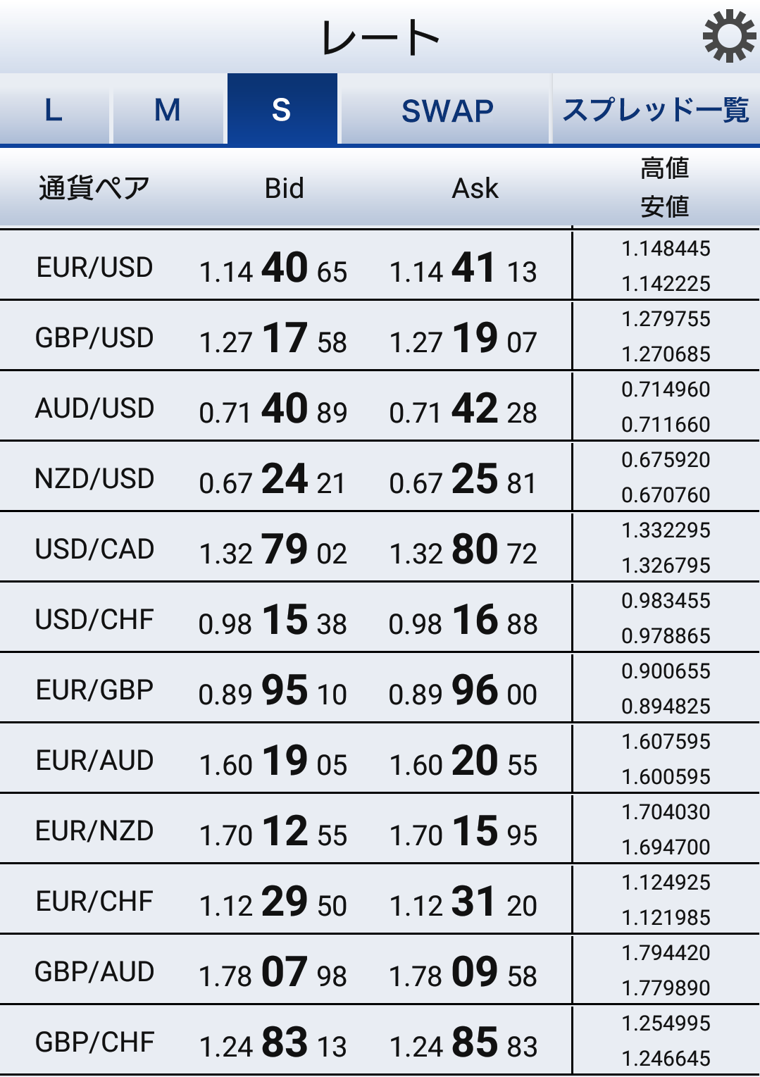 通貨ごとに( 米ドル × ユロドル = ユロ円 なので)並べています。