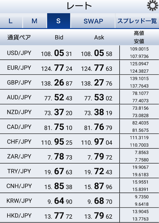 通貨ごとに( 米ドル × ユロドル = ユロ円 なので)並べています。