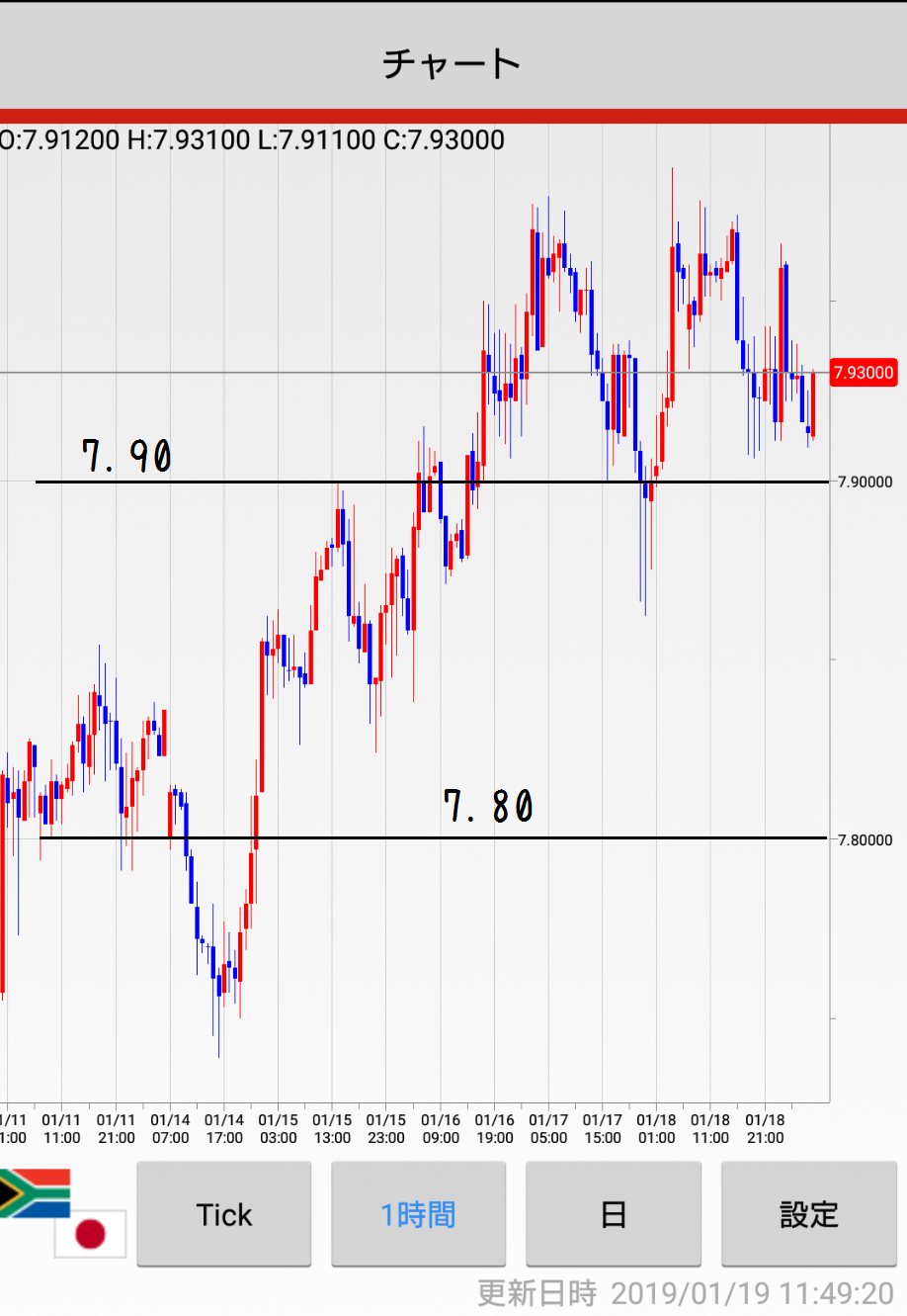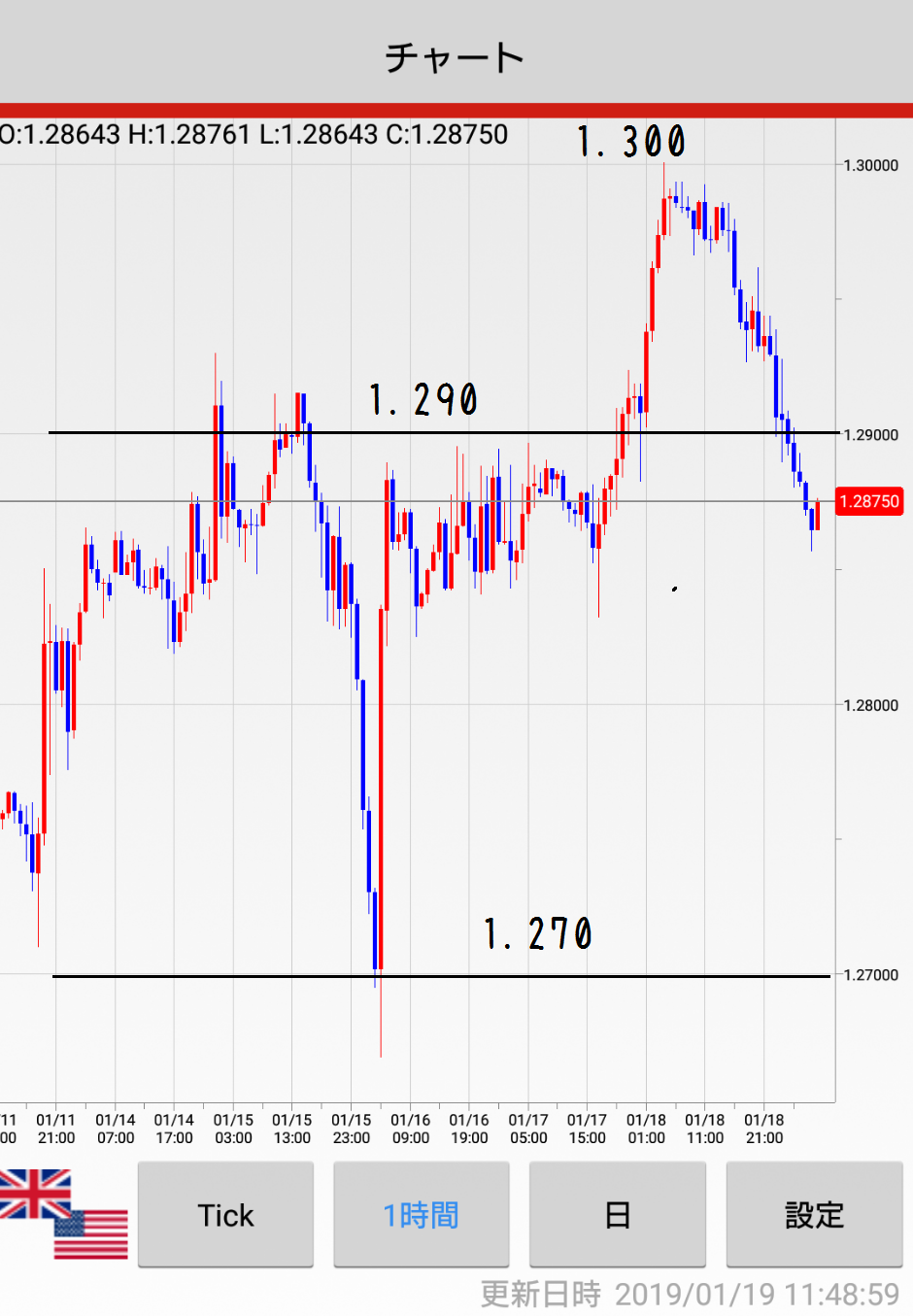 一週間の振り返りの時は60分チャートです)