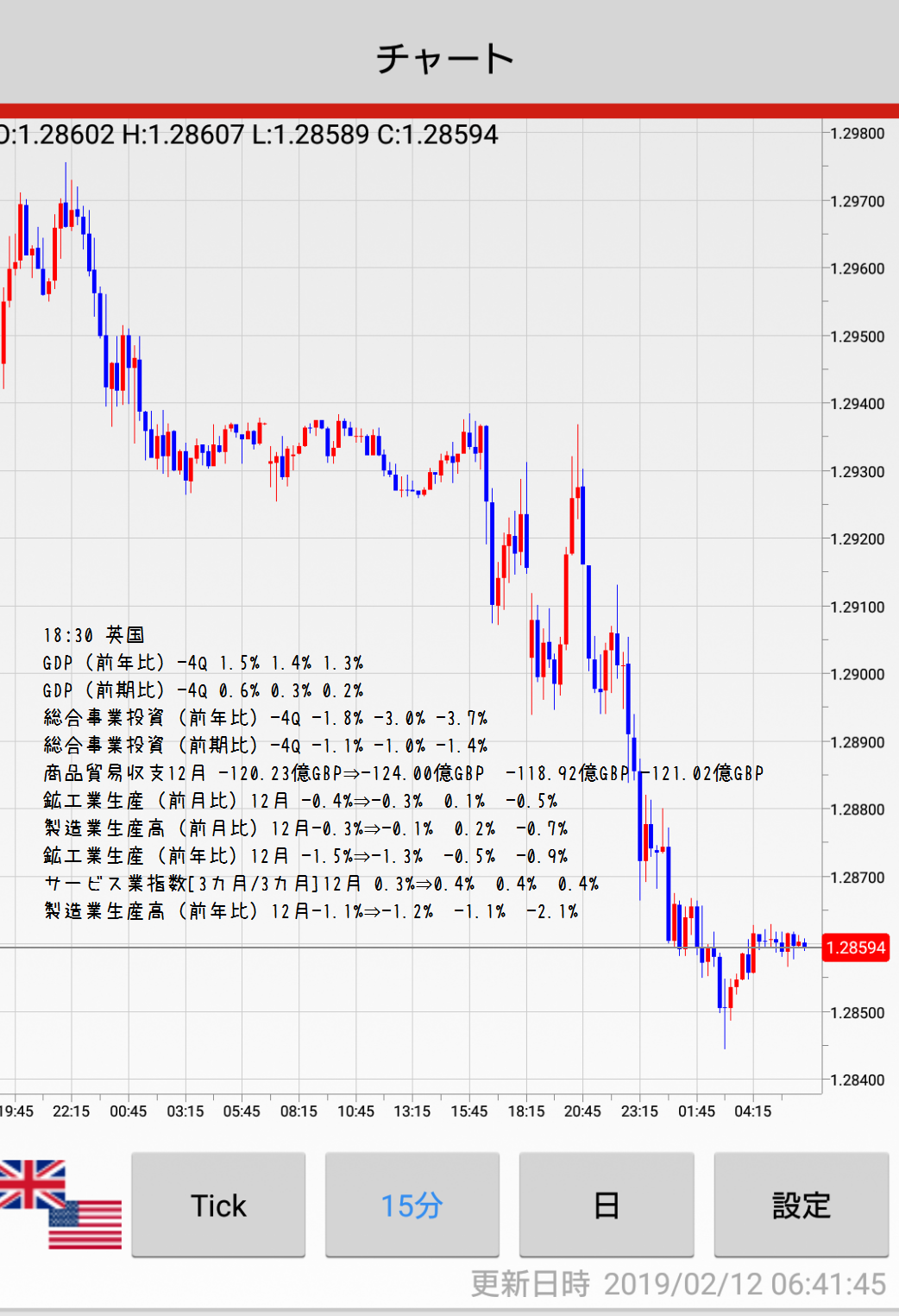 (月~金は15分チャート、一週間の振り返りの時は60分チャートです)
