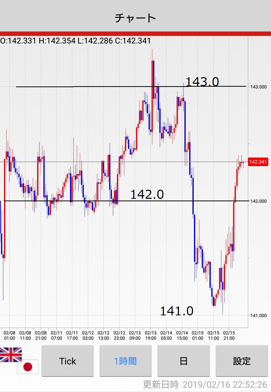 (月~金は15分チャート、一週間の振り返りの時は60分チャートです)