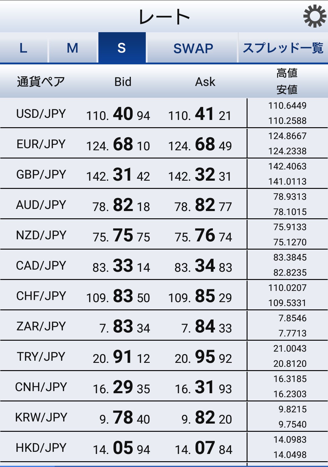 SBIFXトレード全通貨一覧
