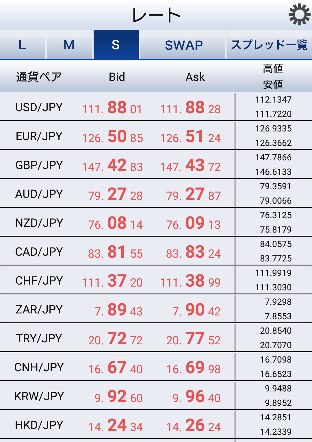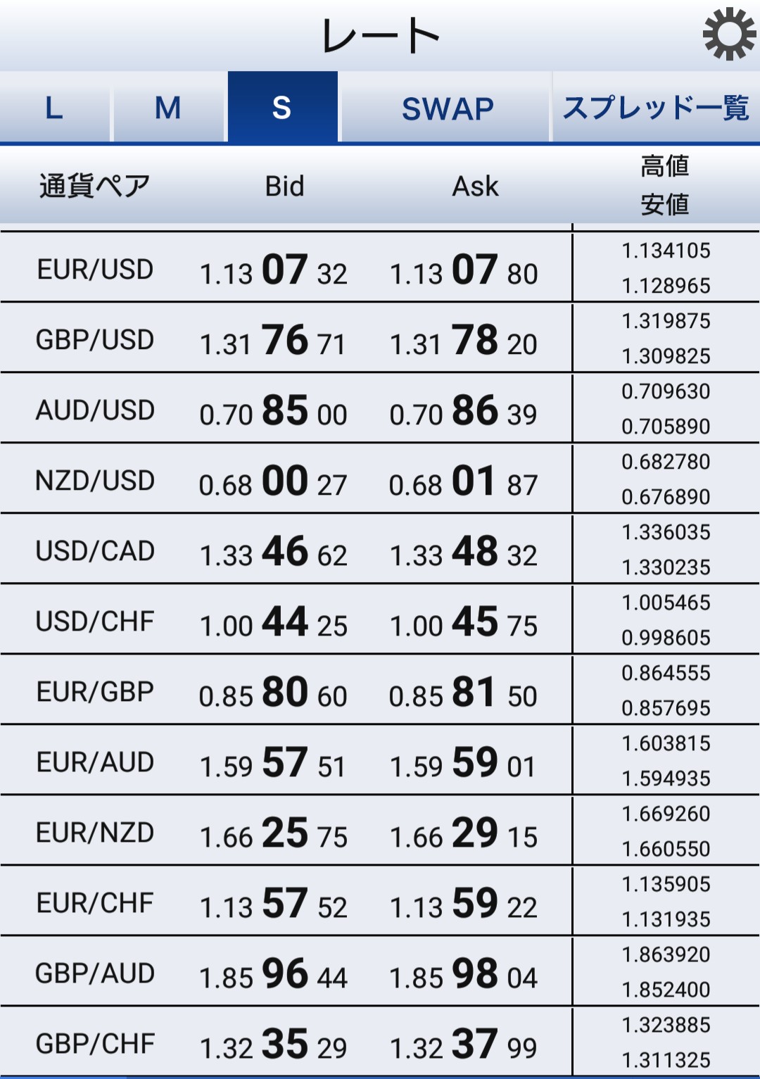 SBIFXトレード全通貨一覧