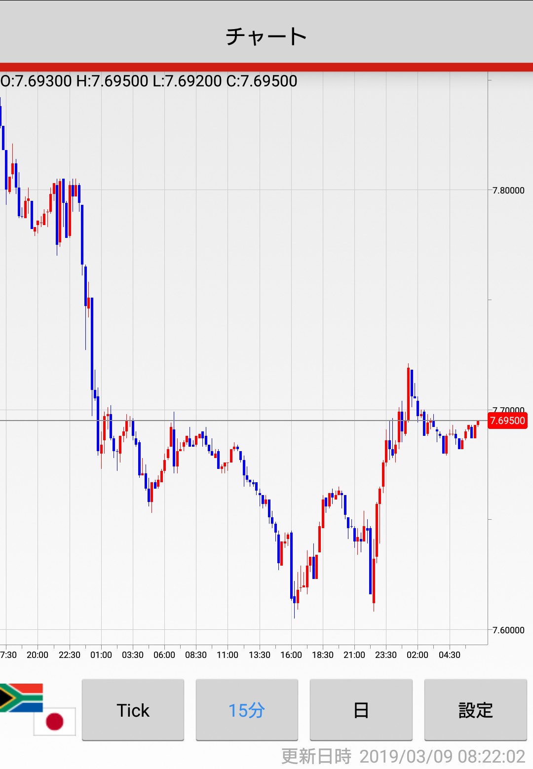 新たにランド円を5万通貨7.699をL