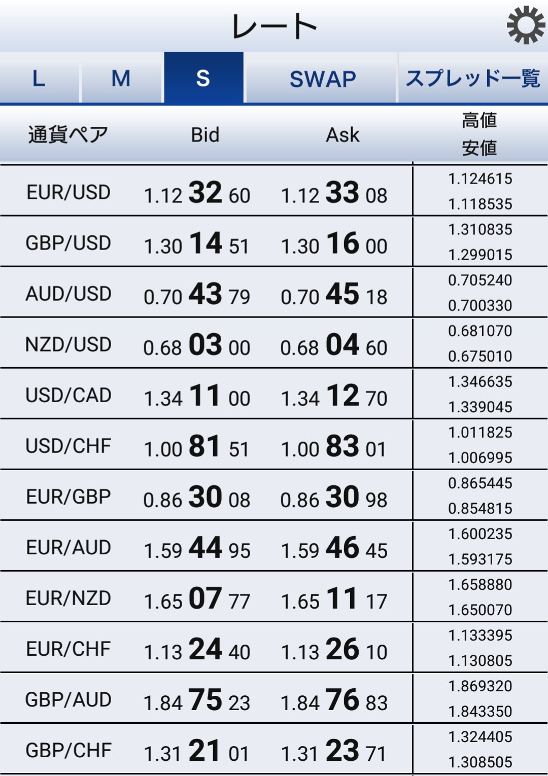 通貨ごとに( 米ドル × ユロドル = ユロ円 なので)並べています。
