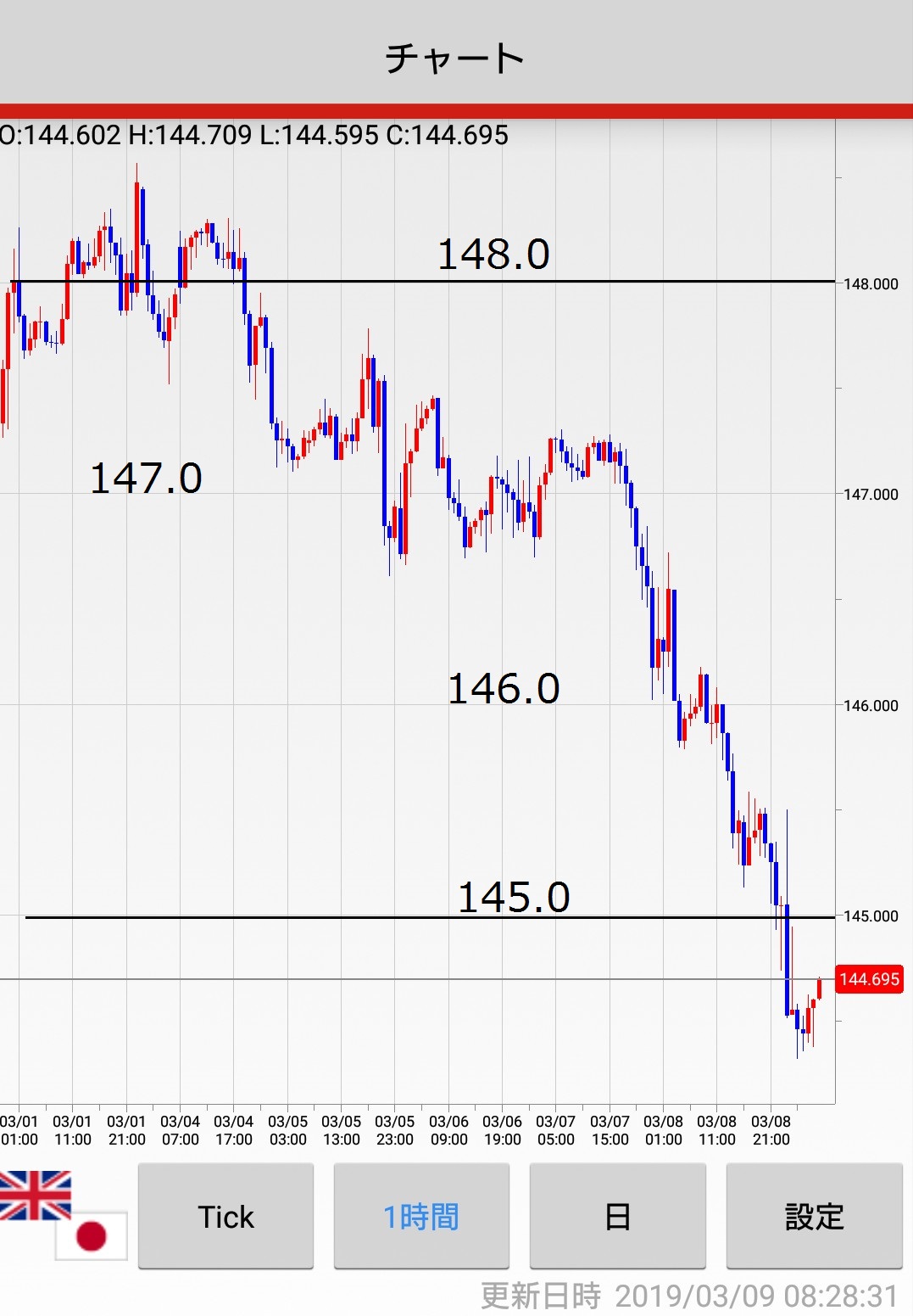 (月~金は15分チャート、一週間の振り返りの時は60分チャートです)