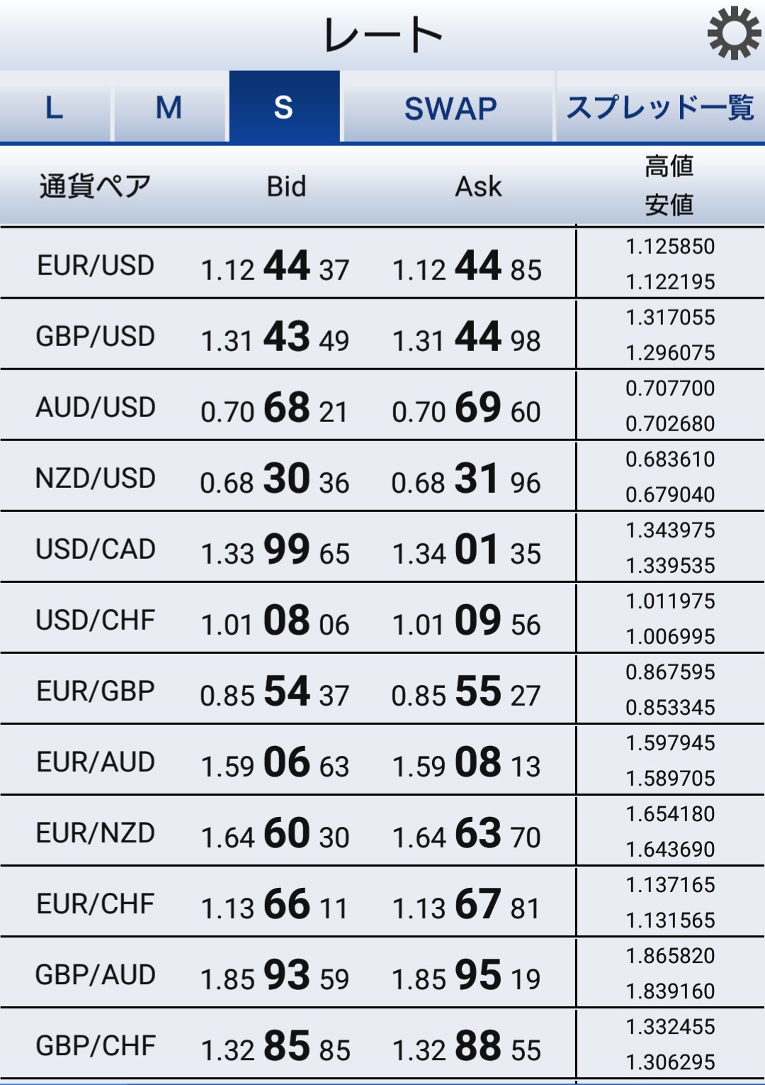 通貨ごとに( 米ドル × ユロドル = ユロ円 なので)並べています。