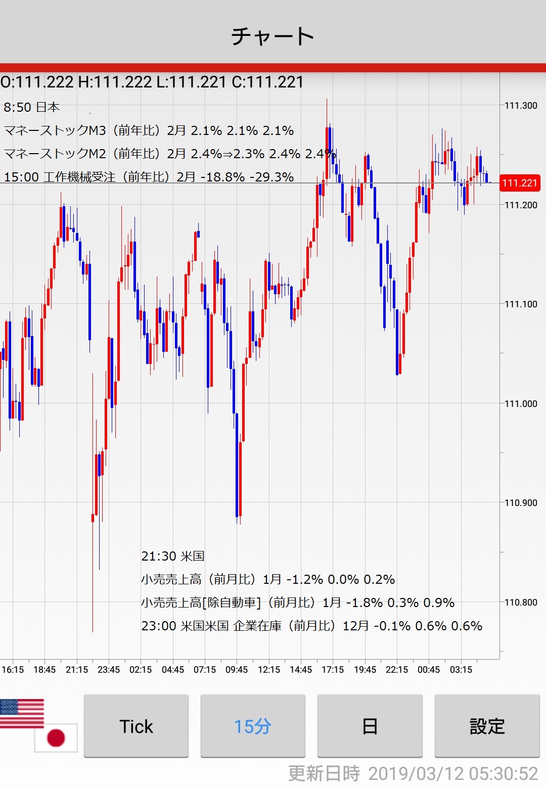 (月~金は15分チャート、一週間の振り返りの時は60分チャートです)