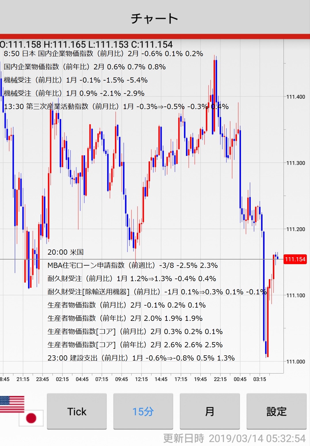 (月~金は15分チャート、一週間の振り返りの時は60分チャートです)