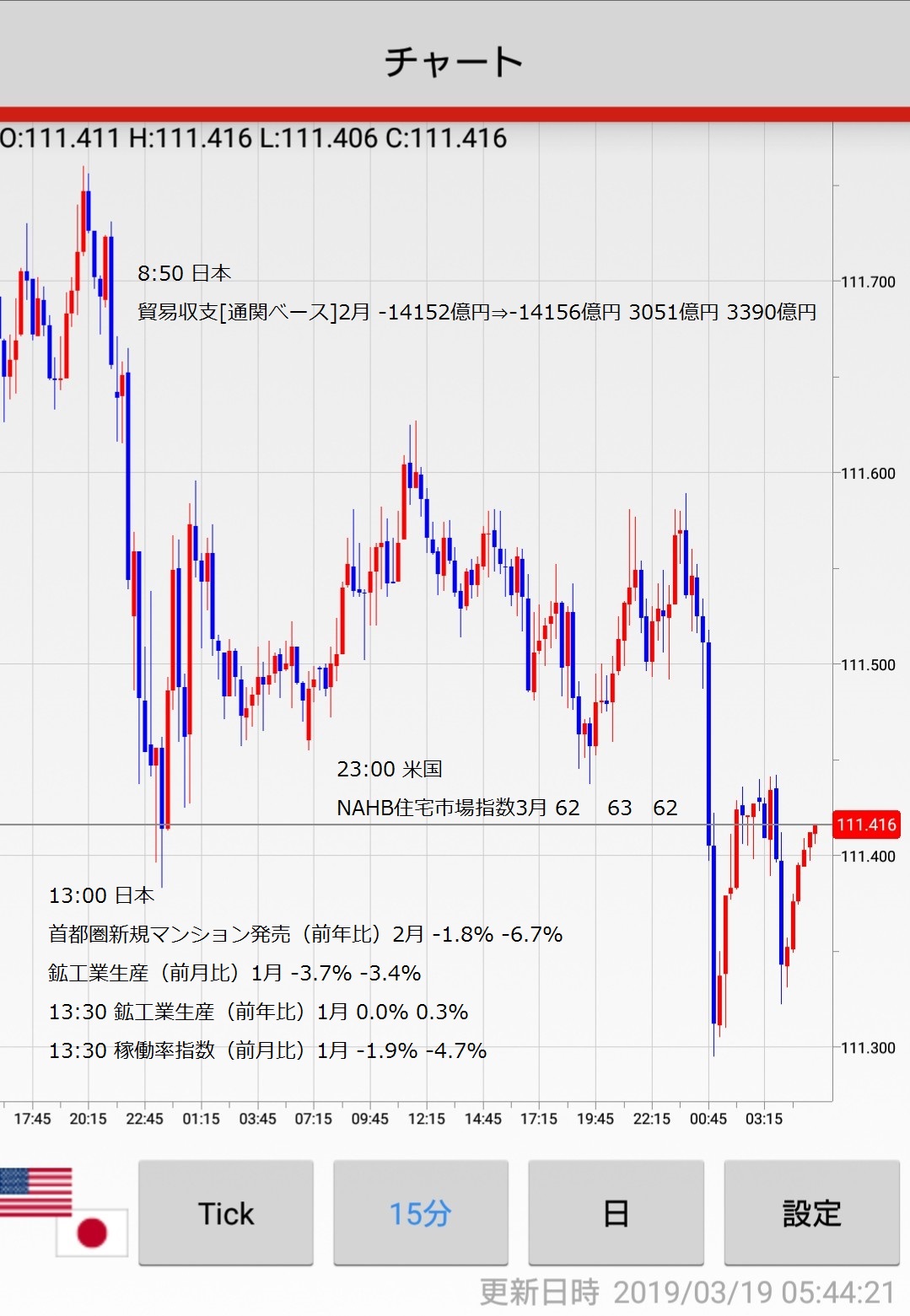 (月~金は15分チャート、一週間の振り返りの時は60分チャートです)