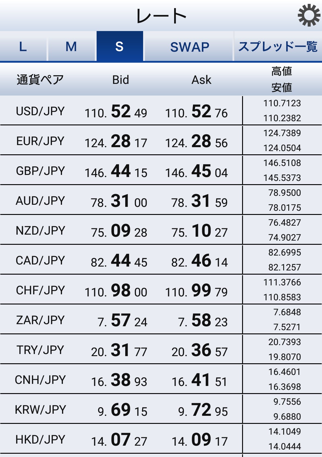 SBIFXトレード全通貨一覧