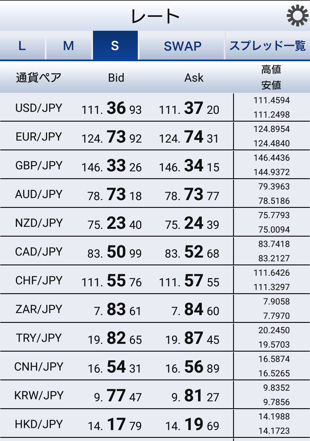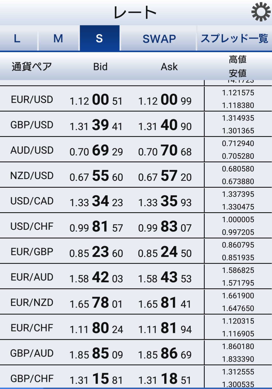 SBIFXトレード全通貨一覧