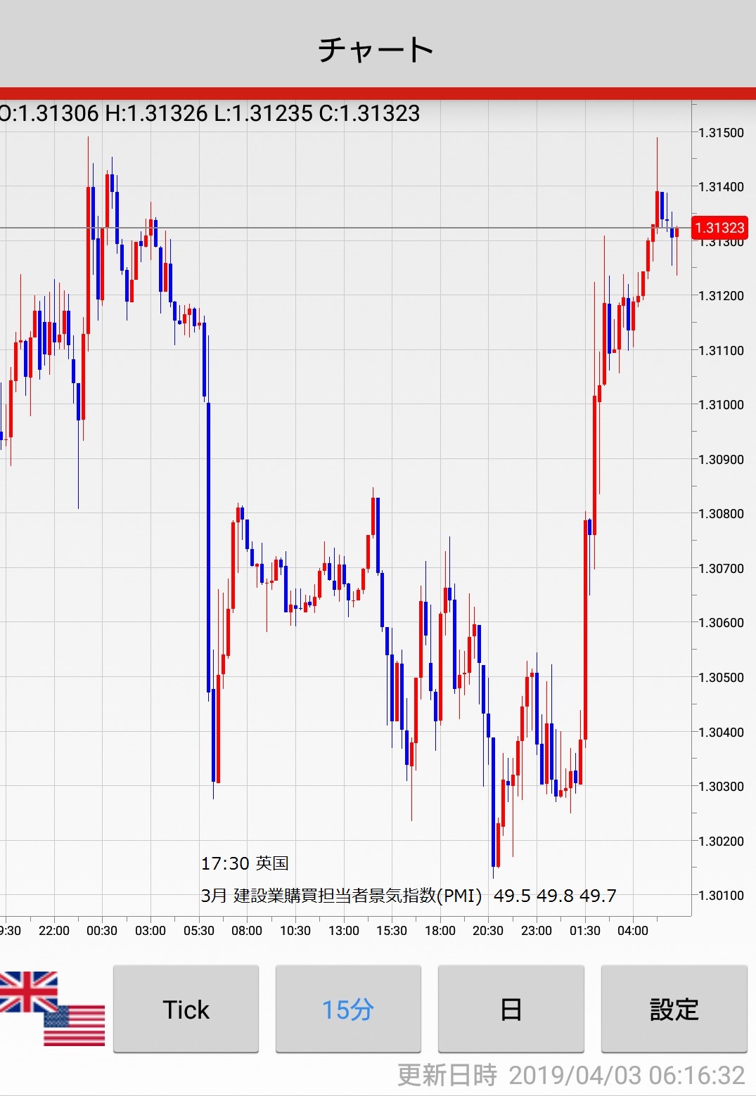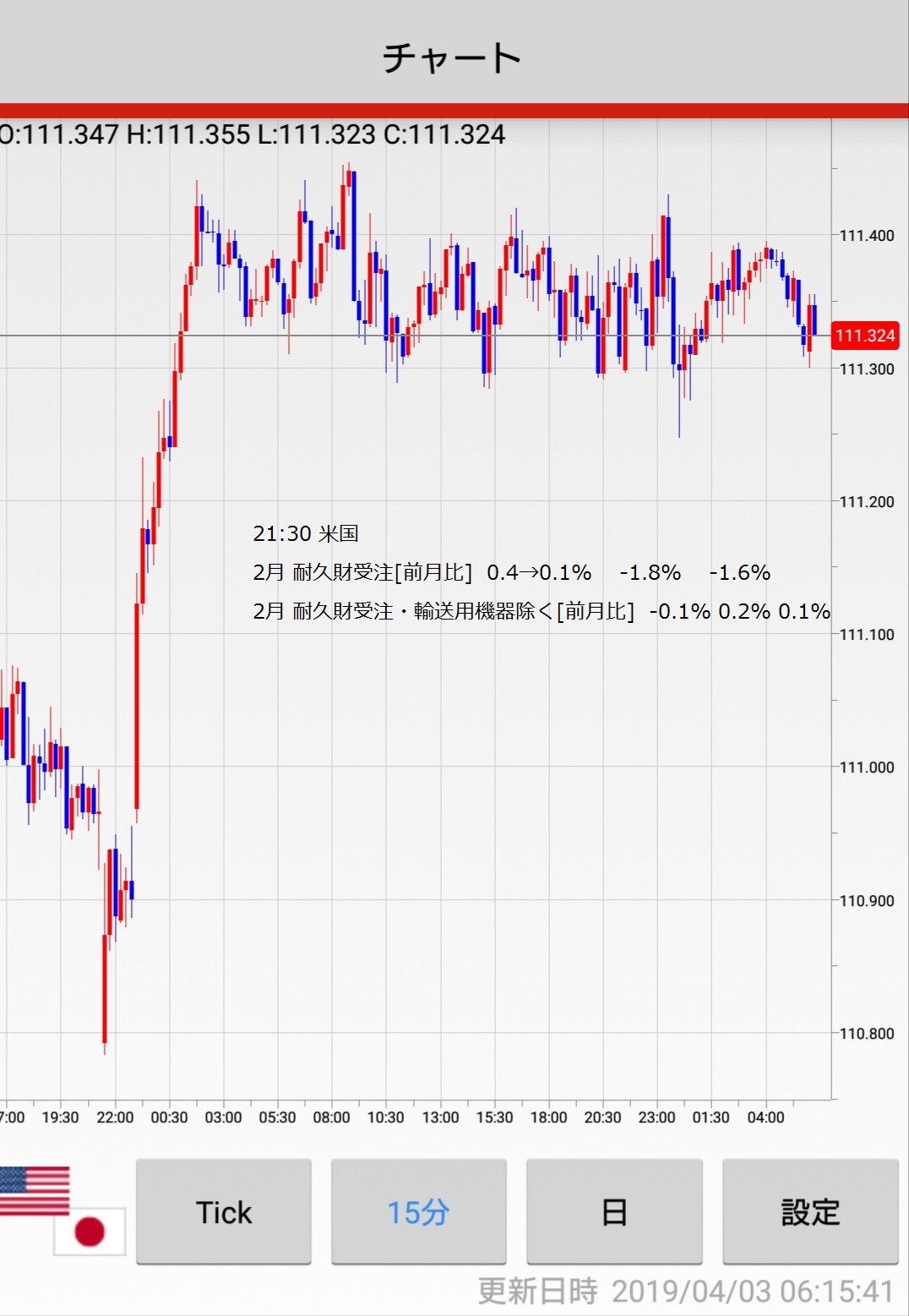 (月~金は15分チャート、一週間の振り返りの時は60分チャートです)
