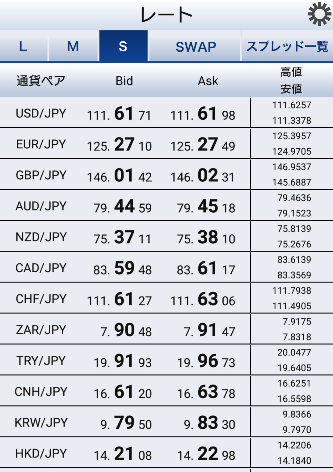SBIFXトレード全通貨一覧