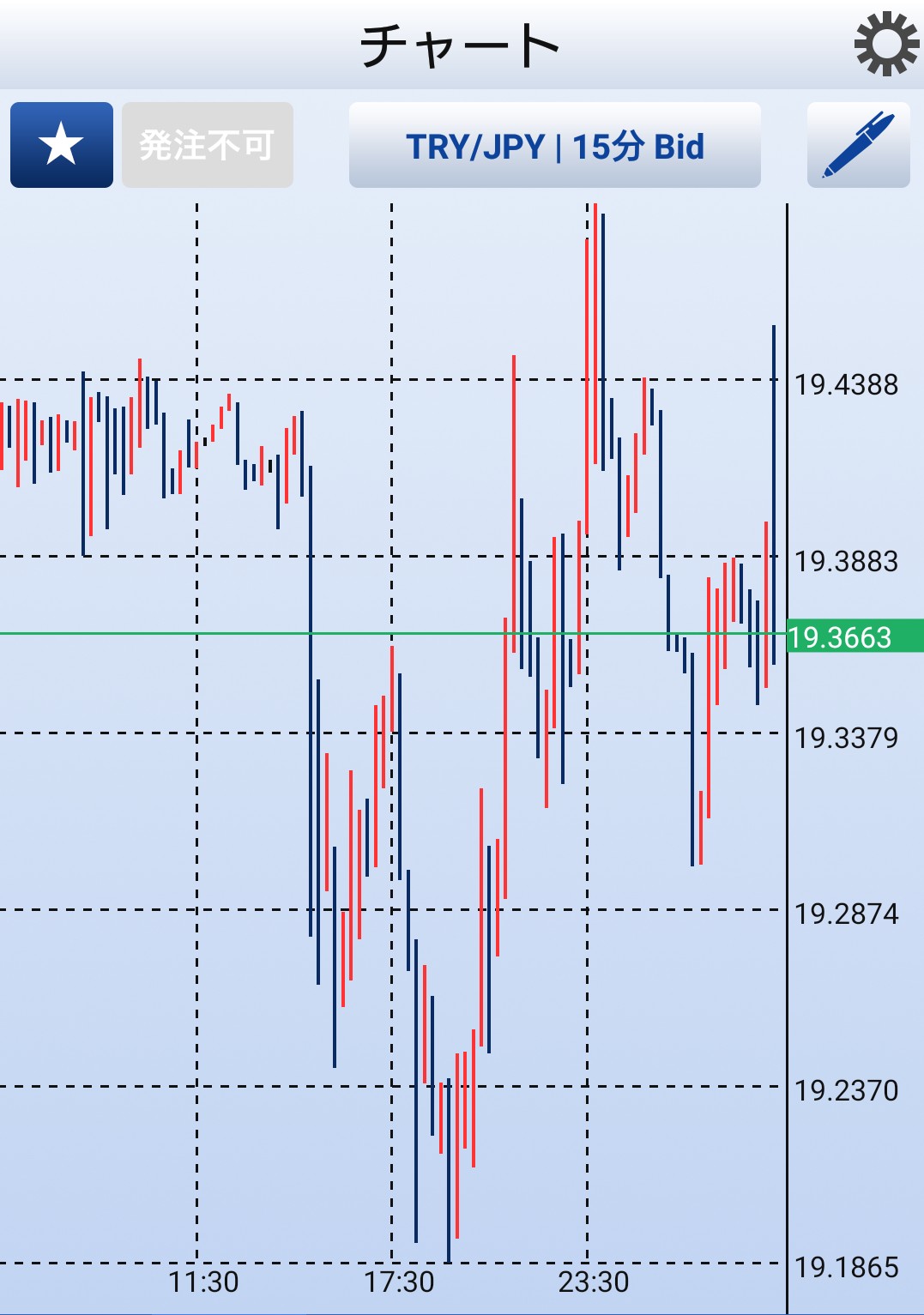 (月~金は15分チャート、一週間の振り返りの時は60分チャートです)