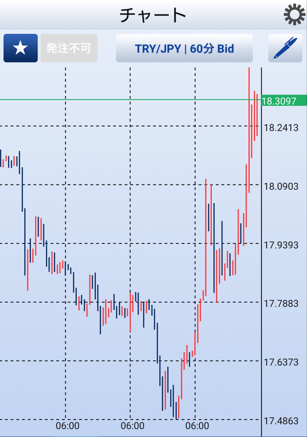 (月~金は15分チャート、一週間の振り返りの時は60分チャートです)