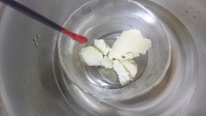 シアバターは36℃ぐらいで溶け始める(だと記憶してる。肌に乗せると溶けるので)