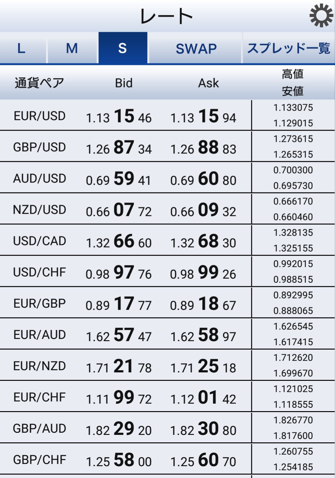 SBIFXトレード全通貨一覧