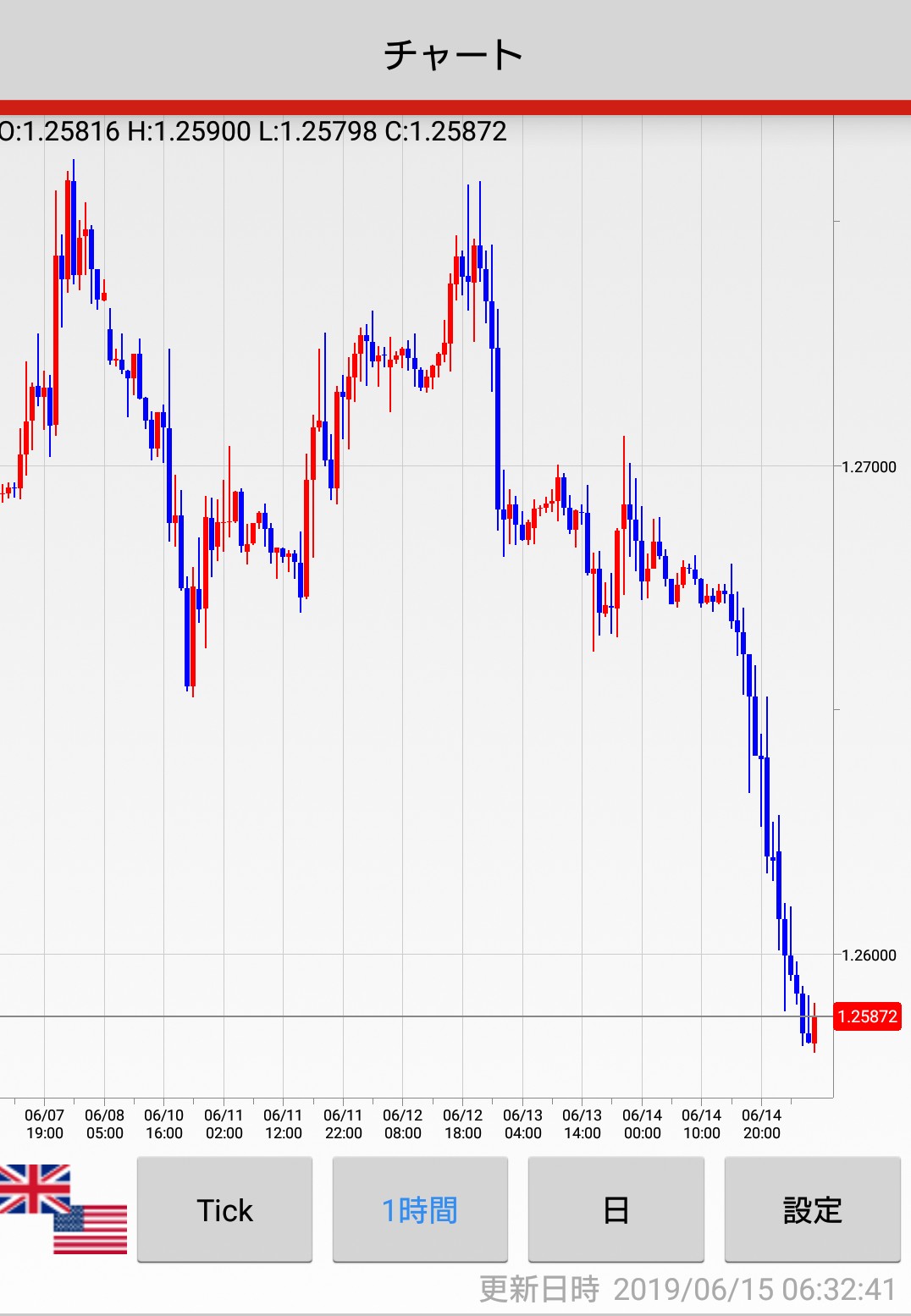 (月~金は15分チャート、一週間の振り返りの時は60分チャートです)