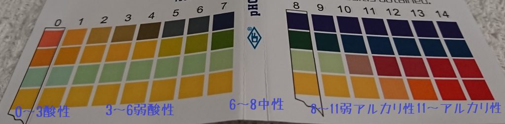 0➡酸性➡弱酸性➡中性➡弱アルカリ性➡アルカリ性14