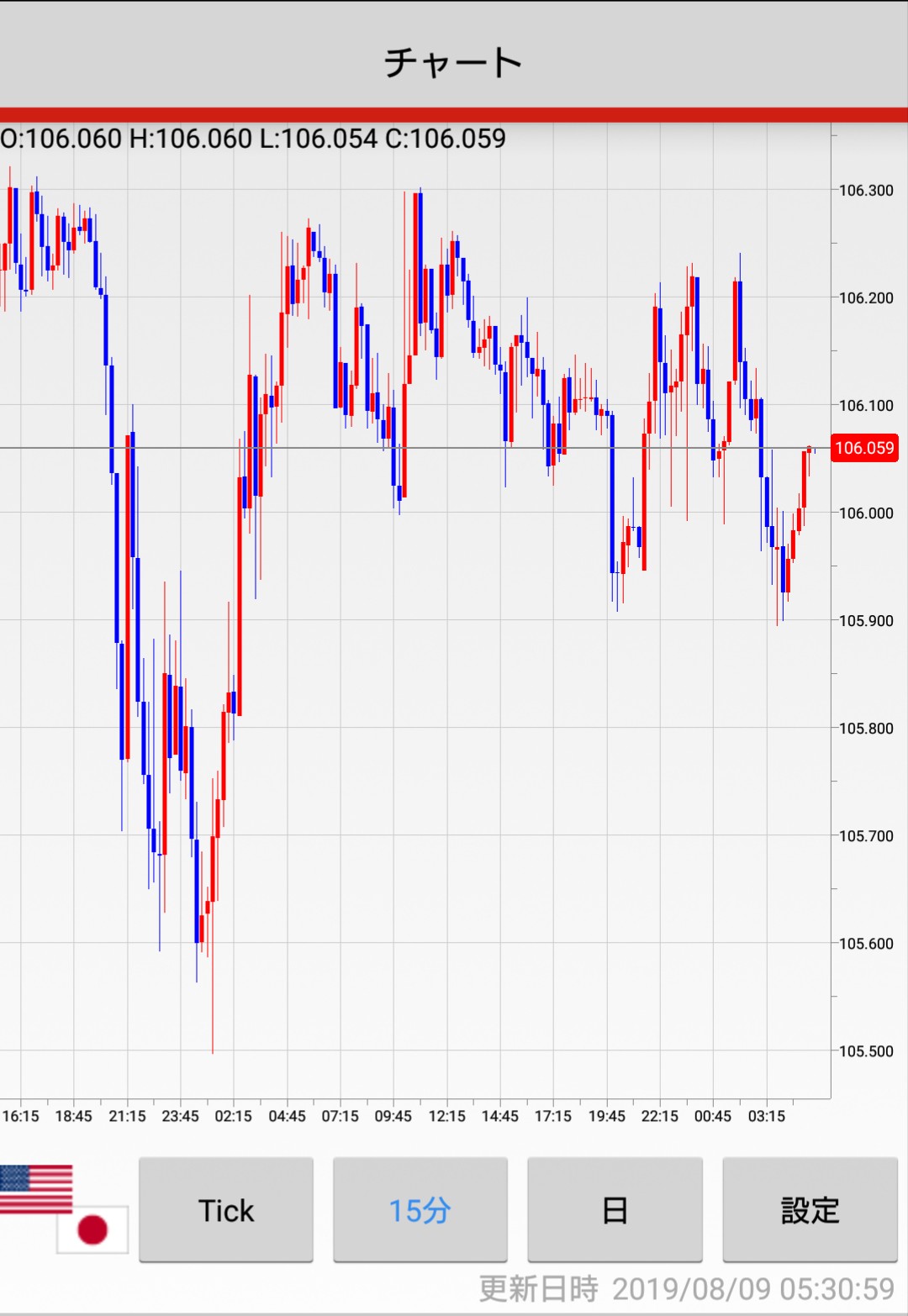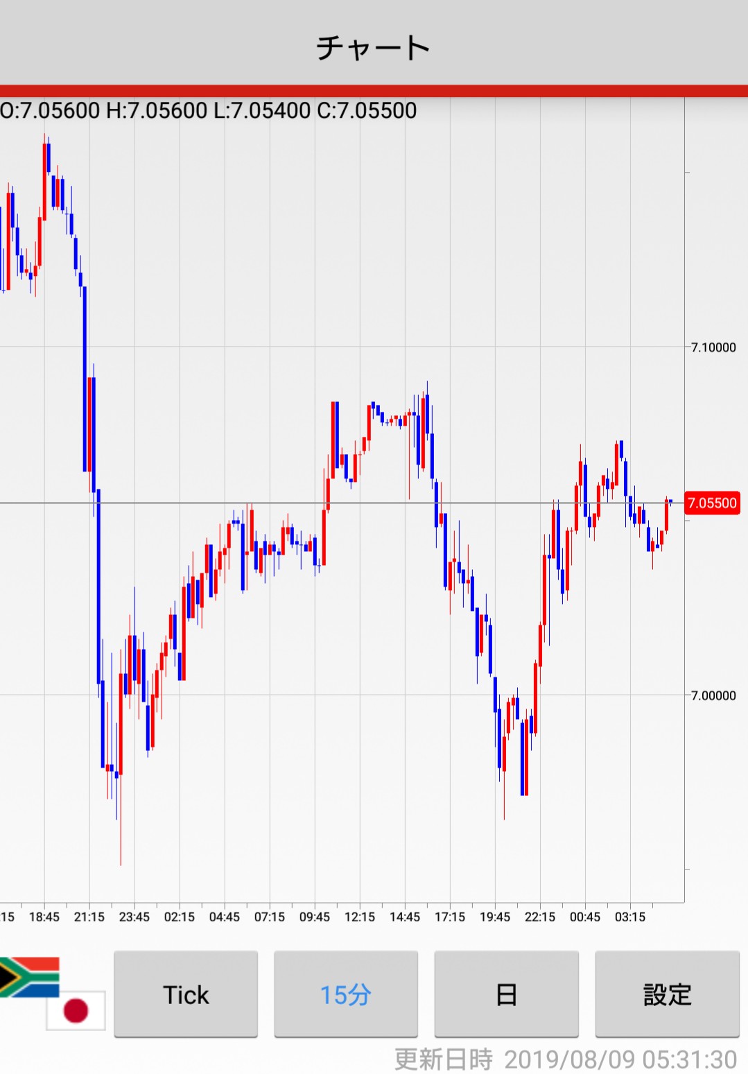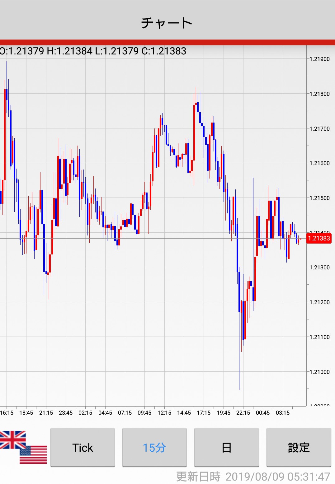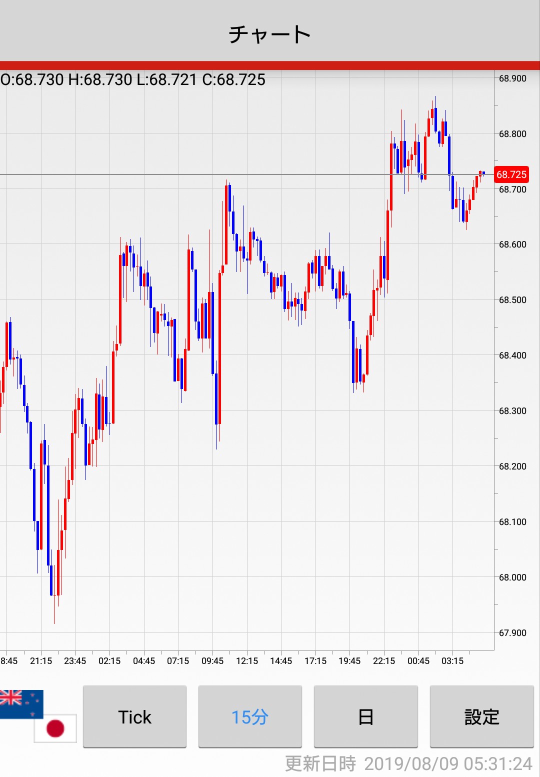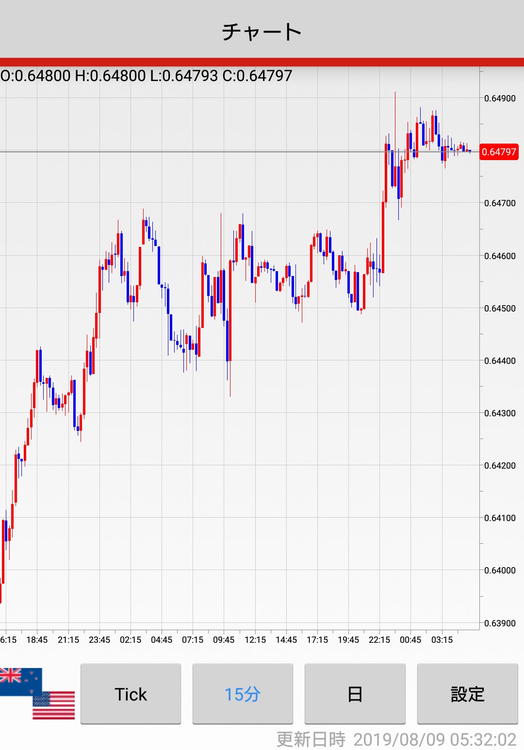 2019/8/8(木)の15分足チャートです^^ 株価終値 日経平均 20,593.35 NYダウ平均 26,378.19 上海株 2,794.55 原油 52.84 為替終値(SBIFXトレード) 15分足チャート(外為ジャパン) 投稿ナビゲーション 2019/8/7(水)NZ政策金利発表 15分足チャート2019/8/9(金)日本GDP、英国GDP発表