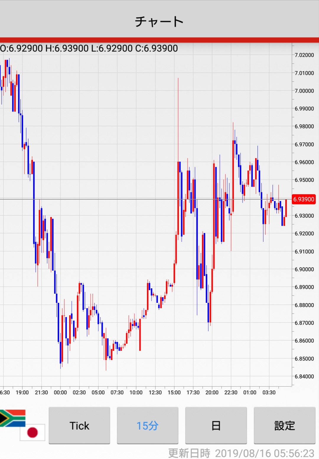 2019/8/15(木)15分足チャート