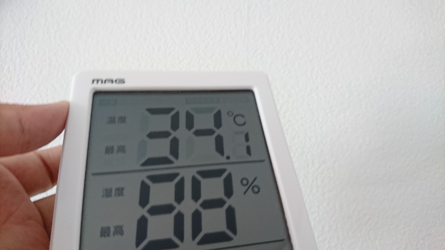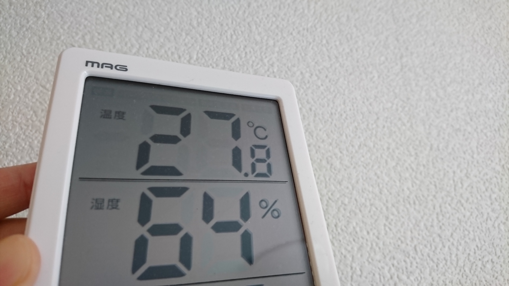 来客用の部屋に温湿度計を置いてます。