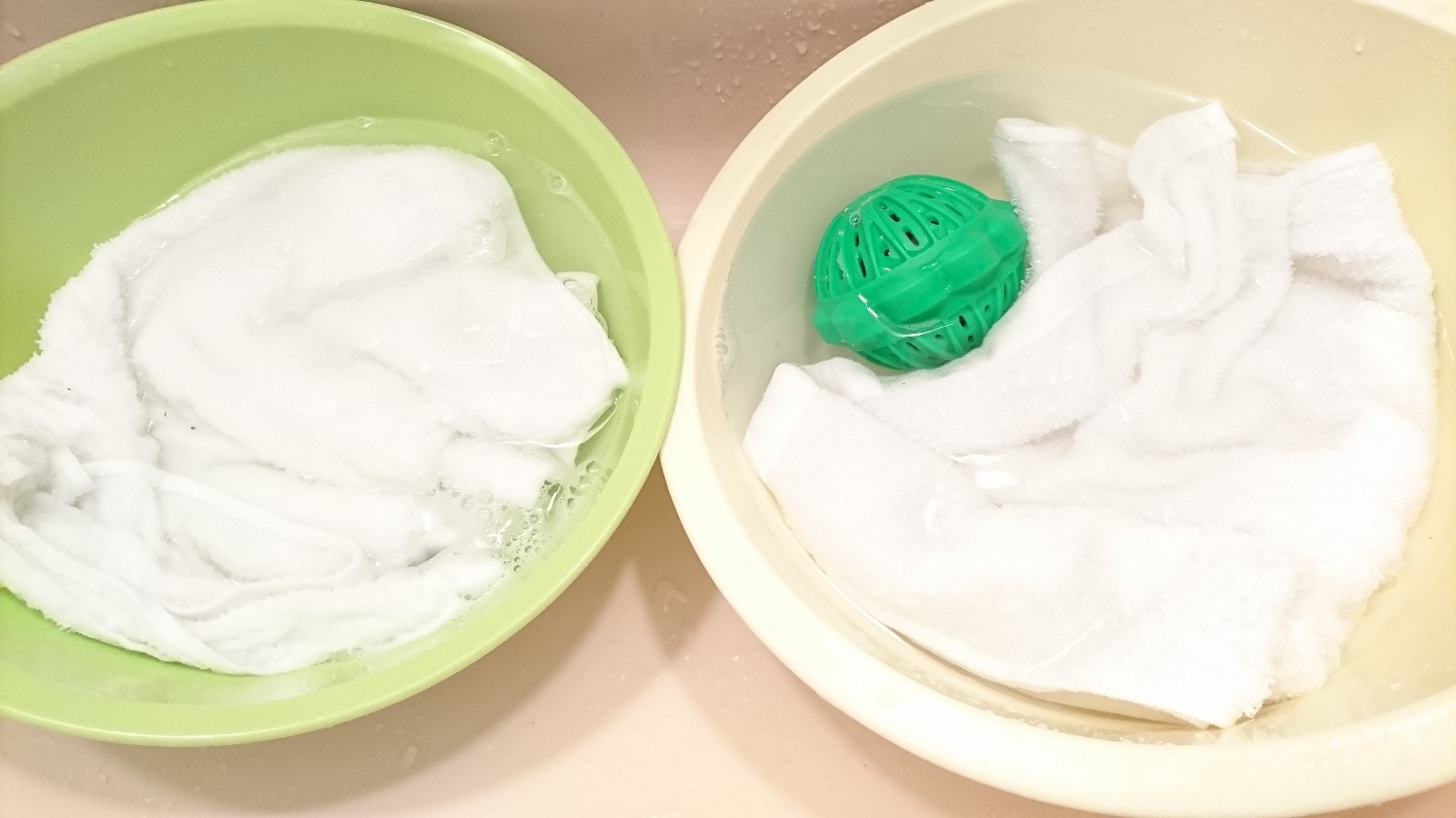 マグネシウム粒も何も入れずに洗ったのに比べると
