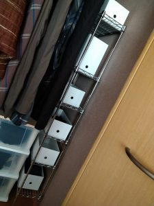 今までハンガーの上のスペースに収納ケースを置いてたんだけど