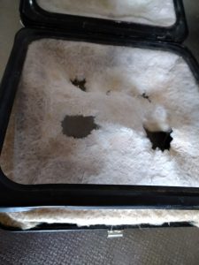 高温のため穴があいてた。