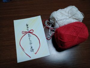赤白の毛糸を買ってきた。