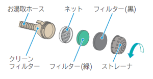 給水が悪くなるとこの部分を分解してきれいに洗っていた。